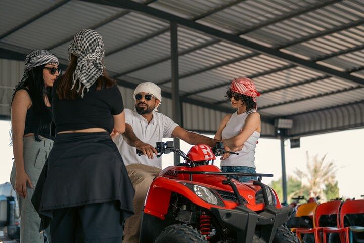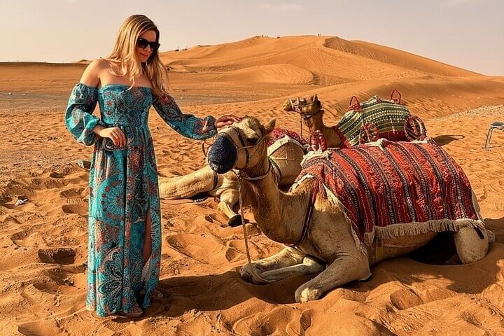 Experience Dubai’s desert like never before with the perfect mix of adventure, culture, and comfort. Enjoy an extended 75-minute quad bike ride across the iconic red dunes, followed by camel riding and sandboarding. End your evening at a Bedouin-style camp with a delicious BBQ dinner and live Arabian entertainment under the stars. With small group sizes, expert guides, and premium service, this experience offers an authentic and unforgettable taste of desert life.