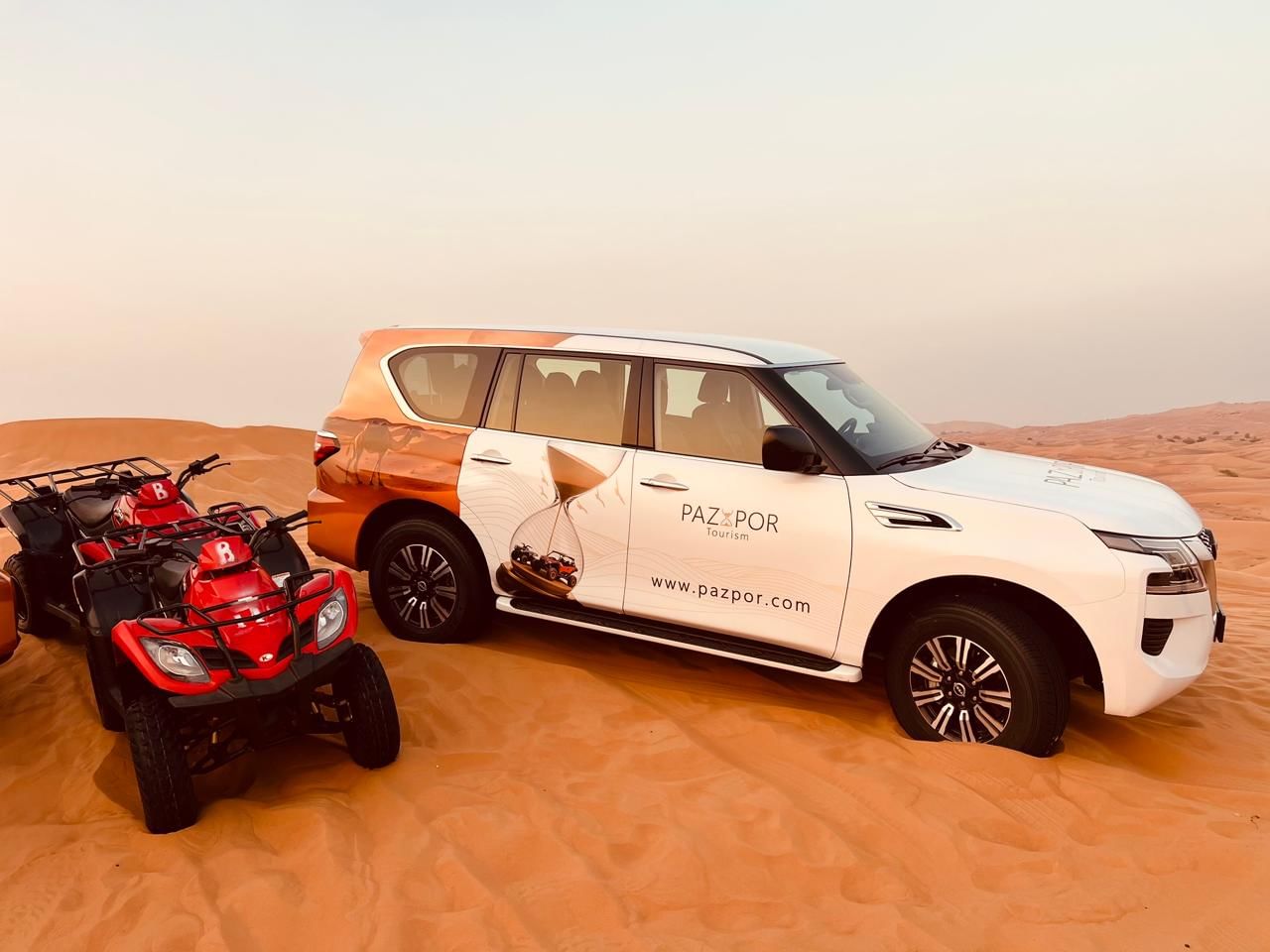 - Join Pazpor Tourism for an unforgettable evening adventure in Dubai’s golden desert — a perfect mix of thrill, culture, and comfort.